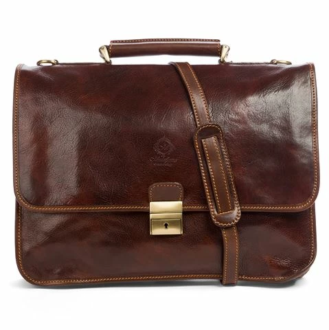 Inspired by old objects that were in fashion long ago, but are still relevant to the modern world, Manufactus leather is rich in colour, history, and timeless appeal. The Maddalena bag is a large and incredibly beautiful briefcase-style bag crafted in espresso-toned leather and fixed with brass-tone hardware.