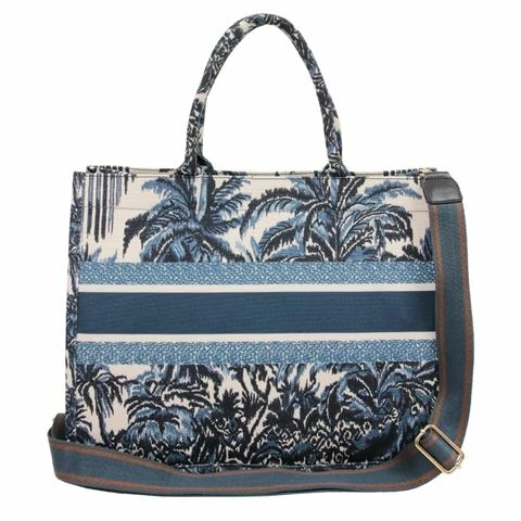 Feel like you’re on vacation every day with the Conrad Large Tote. Crafted from a tapestry inspired fabric, the bag is adorned with palm trees and floral motifs in stunning shades of blue. It features a generous main compartment with three additional pockets for extra storage. Plus, the top handles and crossbody strap allows for versatile wear. The perfect statement accessory.
